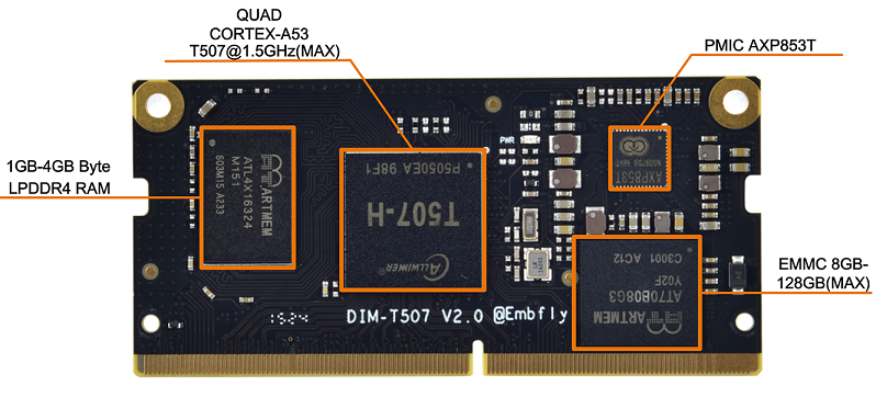 l 采用Allwinner公司Cortex-A53四核T507車規級處理器,運行最高速度為1.5GHZ;