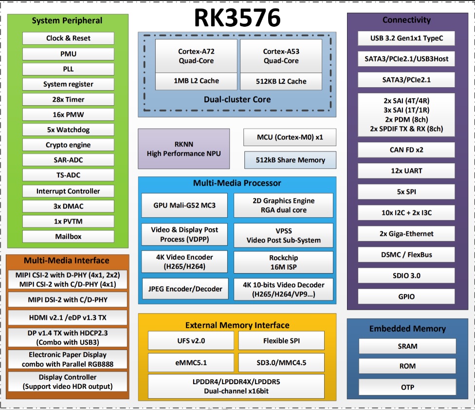 RK3576處理器 RK3576-Rockchip-SoC-Roadmap-for-AIOT 以下為RK3576芯片規(guī)格: 編解碼: 顯示: 視頻輸入: 高速接口 其他 安全 更強的顯示能力